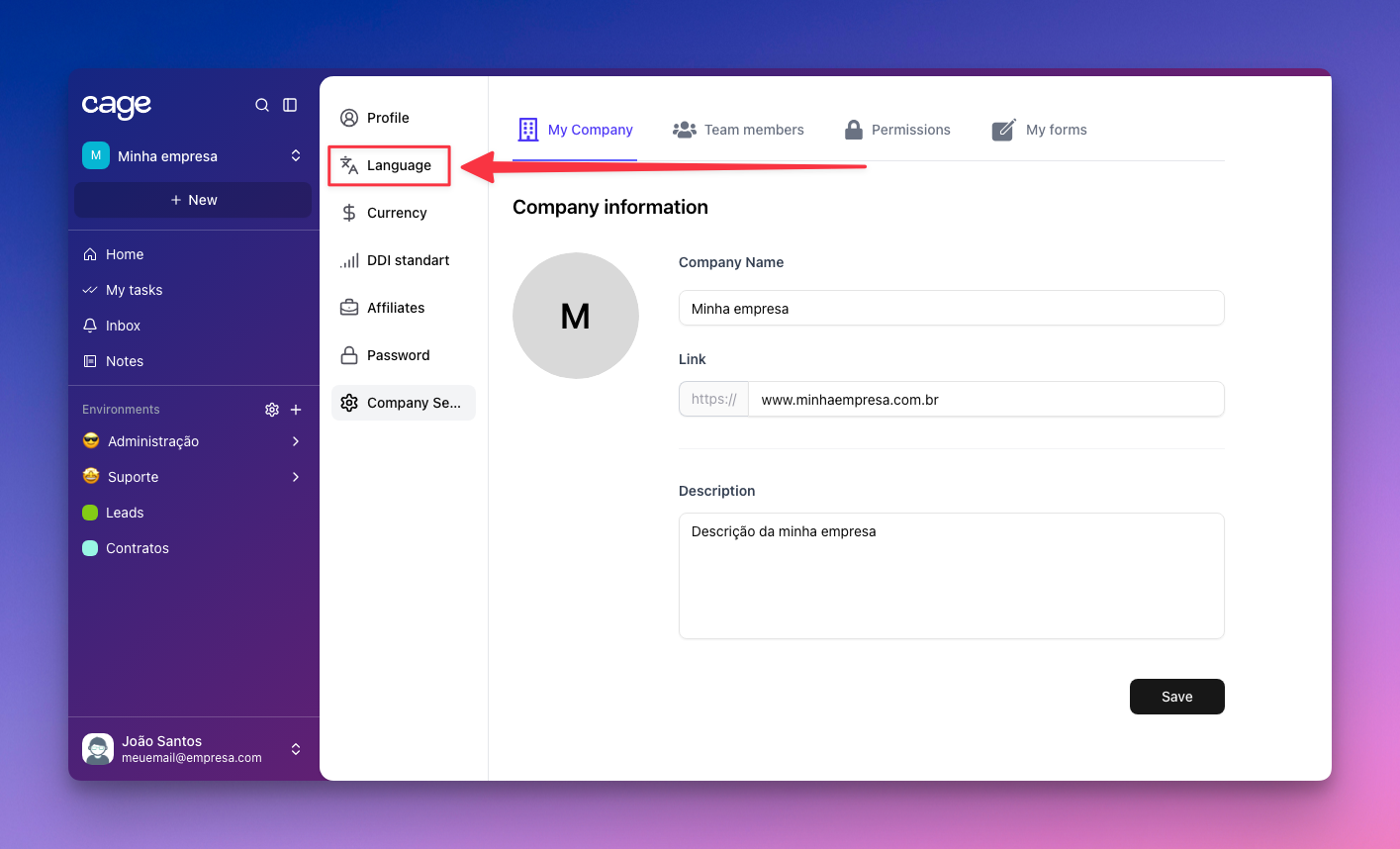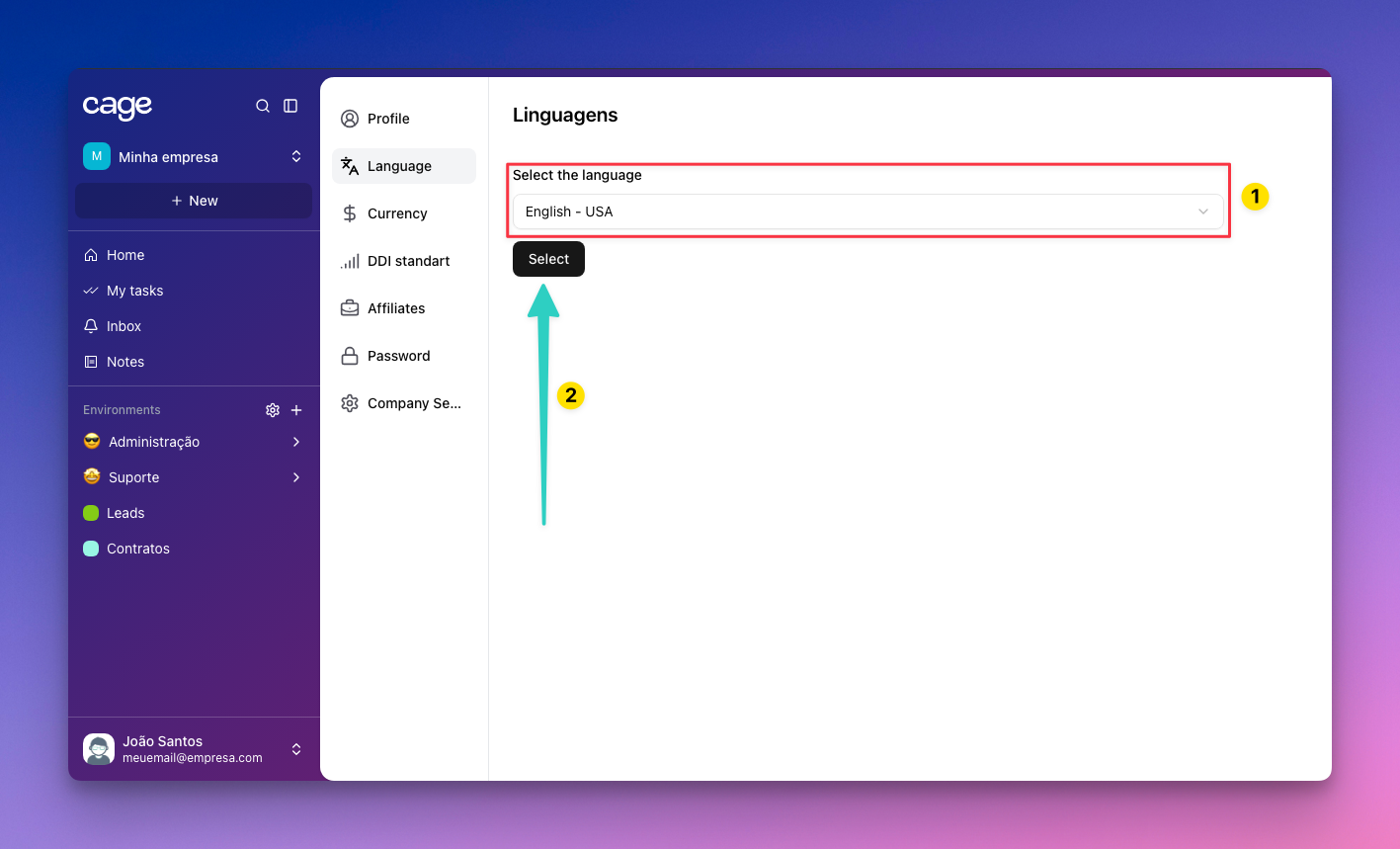 Caso esteja com o Cage em uma língua em que não está confortável e não está conseguindo trocar a linguagem, siga este tutorial que irá conseguir: