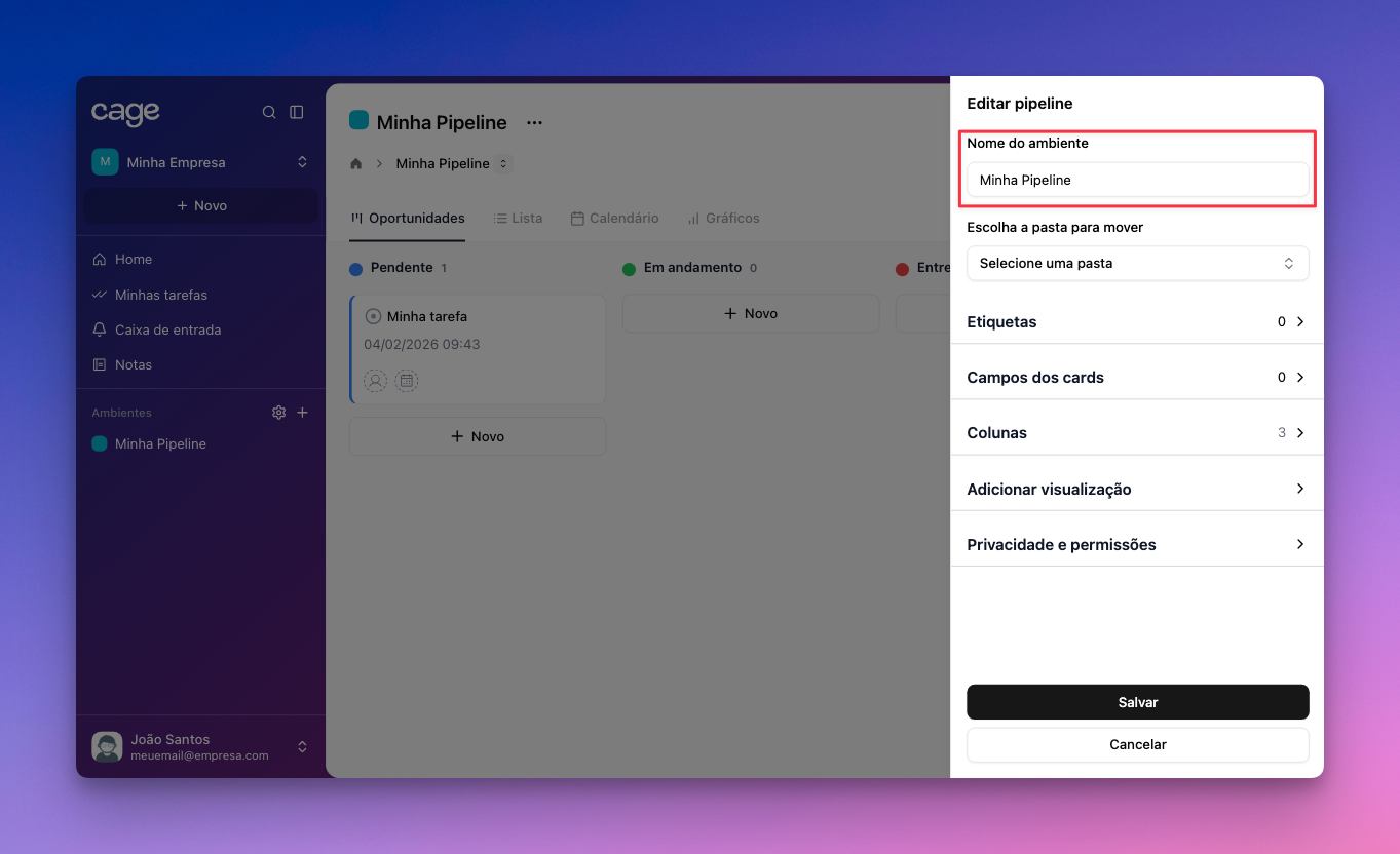 🧠 Como personalizar o pipeline/cards