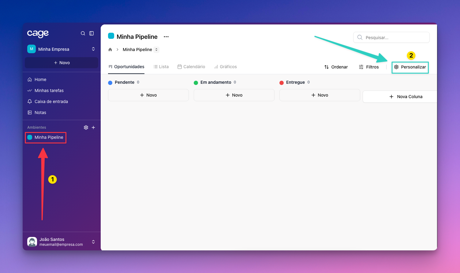Abra a pipeline em que irá receber os leads e aperte no botão “Personalizar”.