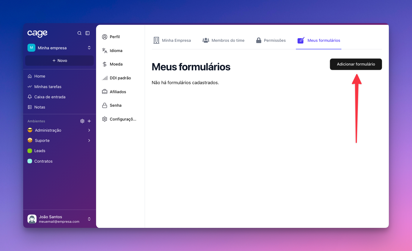 👉 Leia este artigo para entender mais: 👨🏫 Entenda como usar o CRM do Cage!