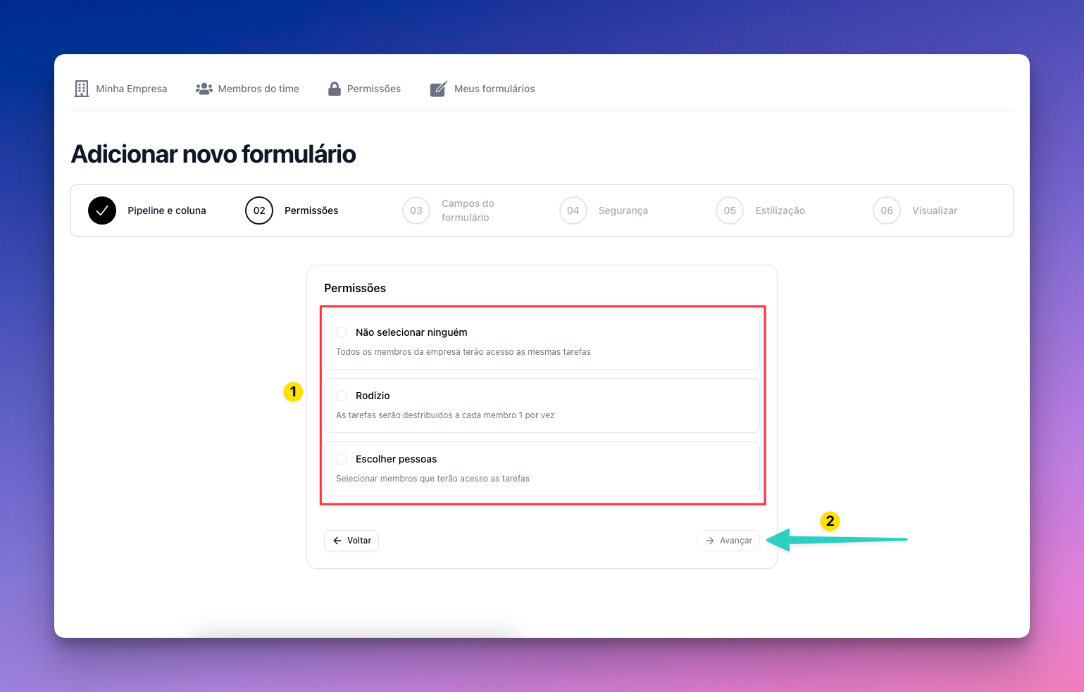 - Escolher pessoas (Vai selecionar os usuários que terão acesso as tarefas)