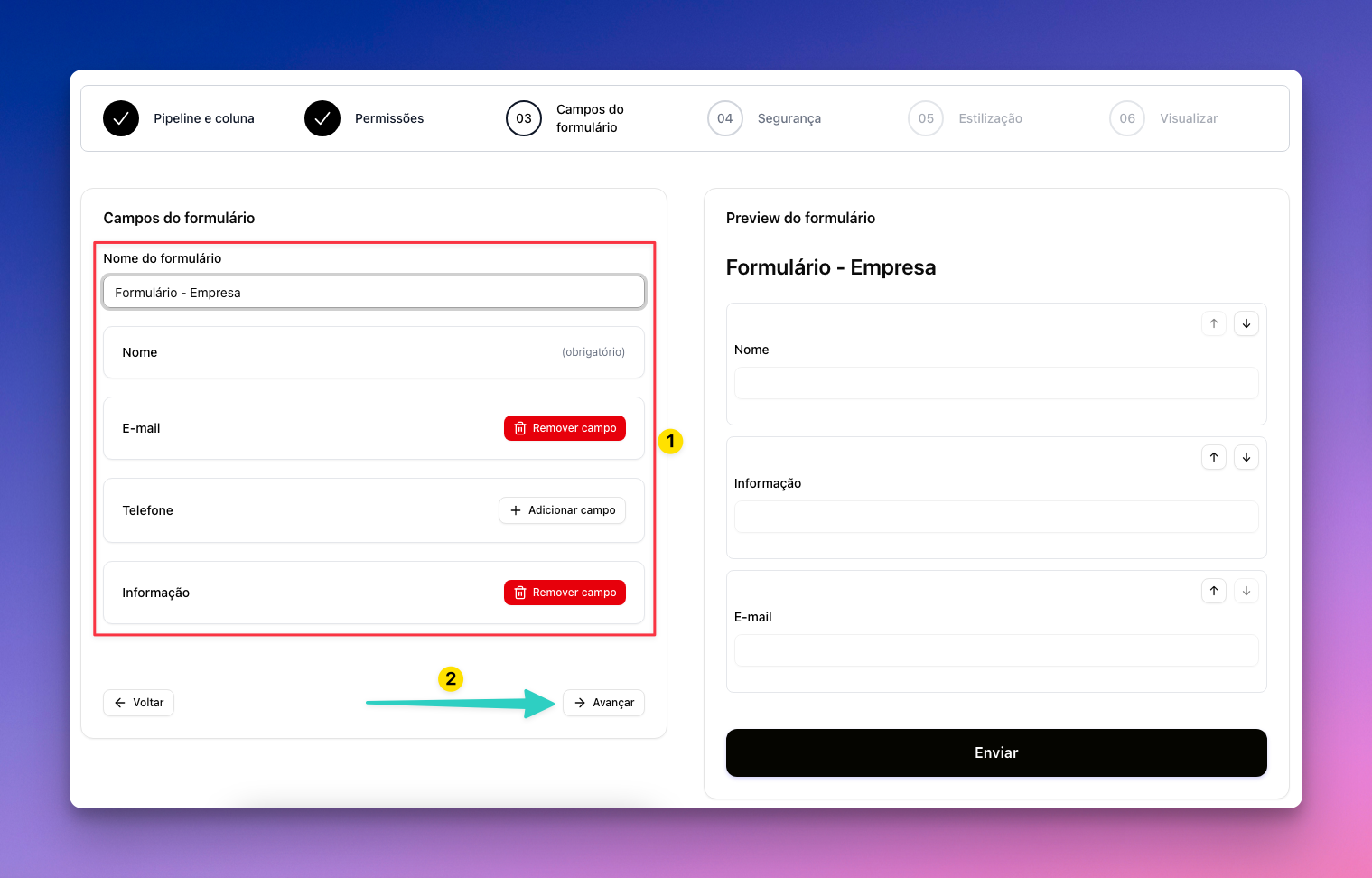 Após preencher tudo, aperte em “Avançar”