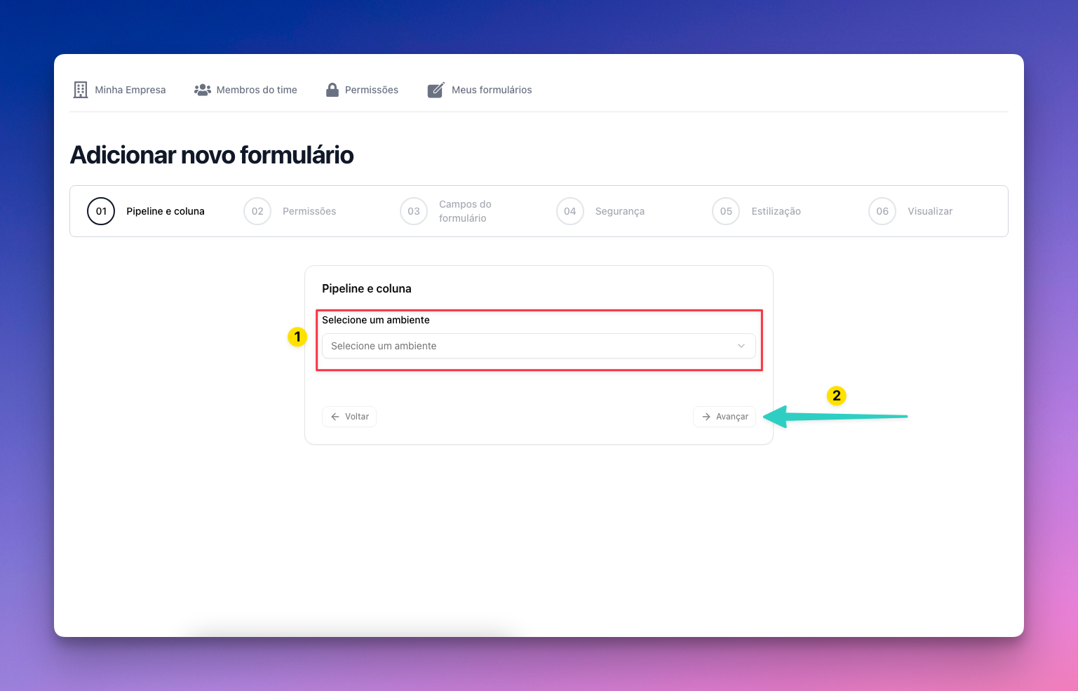 Para criar um formulário em nossa plataforma, é necessário ter um ambiente e um pipeline onde irá receber as respostas do seu formulário.